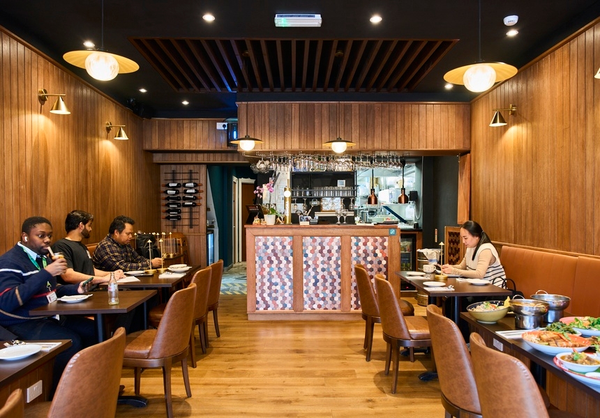 Like its sister restaurants, Bangkok Belly signals its modern take on Thai dining through its decor – dark wood and leather seats, one wall lined with Chilean merlot. The menu brings together classics like moo ping (grilled pork skewers), papaya salad and panang curry with buckets of grilled or steamed mixed seafood, and a spicy, limey seafood hotpot that helps dust the winter cobwebs away. Unlike MLTF, there’s no pad thai or green curry: the menu veers to the south for massaman, and to Isan in the north-east, where Tanakrit’s family are from, for the fish sauce- and lime-based jaew dipping sauce that’s served with crispy pork belly.