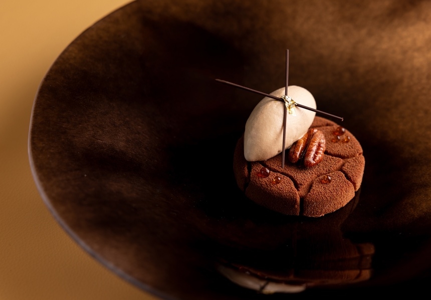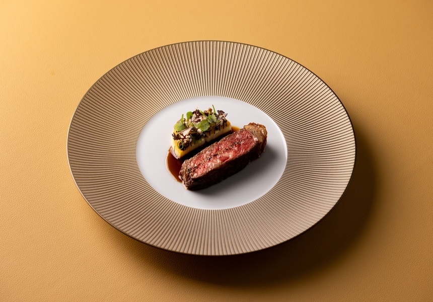 In practice, that means the Gordon Ramsay protege is presenting a cuisine unmistakably his. There’s veal slow-baked with Italian pumpkin and a hay-infused buttermilk sauce; 125-day-aged Cumbrian beef with bordelaise sauce, potato, grilled onions and smoked bone marrow; and toasted grains with smoked chestnut and Macallan whisky caramel for dessert, all plated with the precision you’d expect from Abé’s fine-dining background. “It’s finessed. It’s very precise. It’s not just bits and pieces all over the plate,” he says.