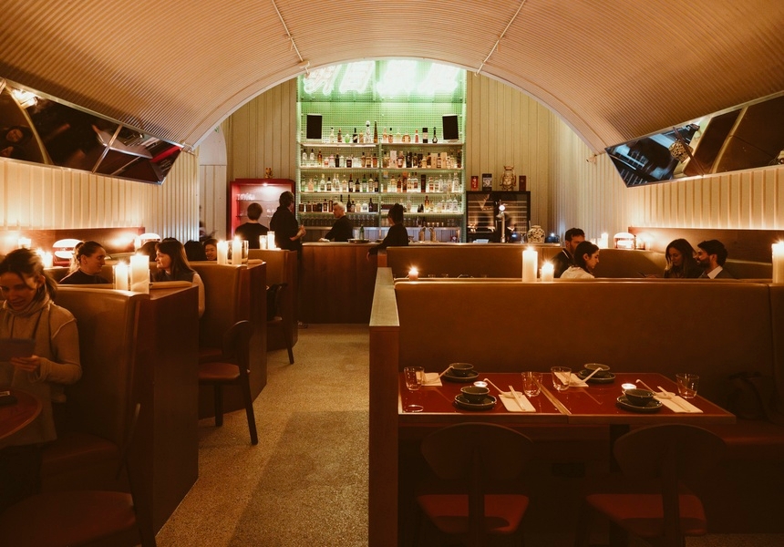 Local designer Daytrip Studio’s (The Lavery, Nightjar, Swift) interiors also nod to the team’s journey through Hong Kong. Diners can sink into intimate booths or perch at one of 10 counter seats looking directly over the open kitchen. It’s all centered around a striking jade-coloured back bar, softly illuminated by a neon glow.