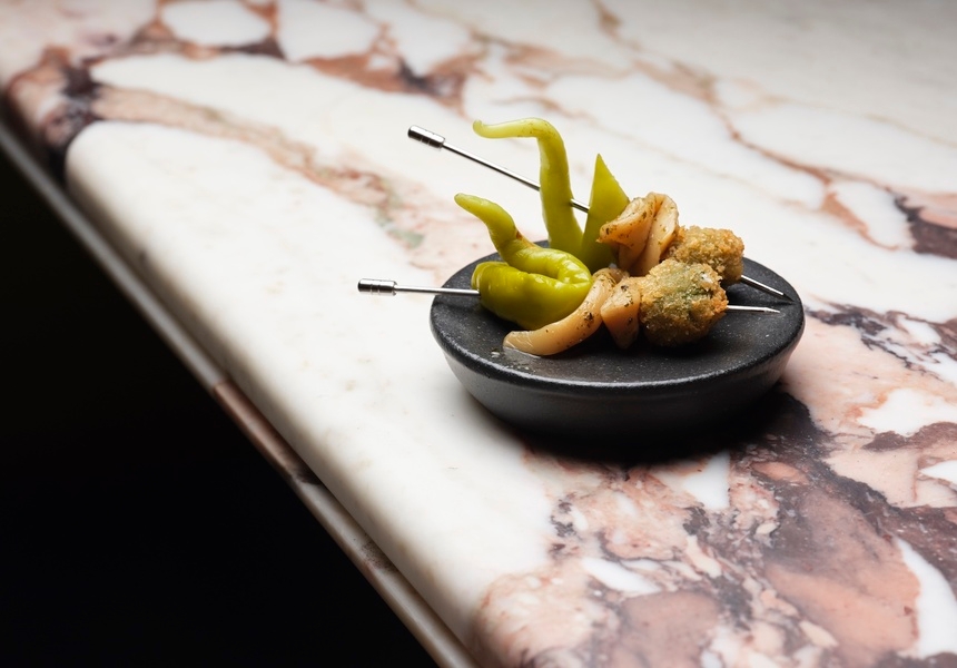 Head chef Evan Moore (ex-Dinner by Heston London and Melbourne) is bringing his own influences. “I’ve been away … in Australia and in Spain,” he tells Broadsheet. “There are a lot of those influences, subtle or otherwise, in the menu.” He calls out the vegan gilda, made with fermented king oyster mushrooms, seaweed and capers. “It hits all the same notes as your normal gilda but it’s totally vegan. It’s something special.”