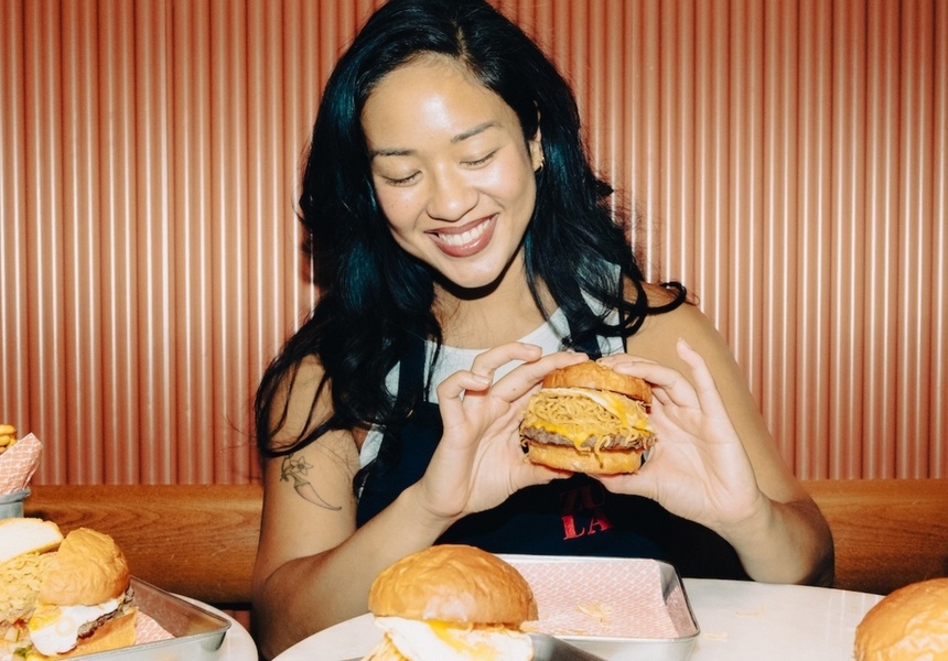 Stephanie’s burger – launching at Zula on April 13 – is as playful as it is personal. She’s chosen the humble Indomie mi goreng noodle as its centrepiece. The globally popular instant noodles, with their familiar sweet-savoury flavour, will sit on top of a thick Aubrey Allen beef patty, along with American cheese and staples of Indonesian cuisine, including crispy fried shallots, a fried egg, sambal chilli sauce and acar (pickled vegetables). It’ll be served in between Zula’s signature brioche buns which are baked in house.