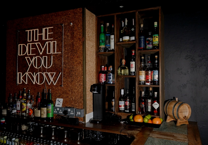 Hidden behind a concealed wall beneath Hoax, the new Italian restaurant in the space that was Chick’n’Sours, The Devil You Know is a sultry new speakeasy by husband-and-wife duo Simone and Lidia Crepaldi.