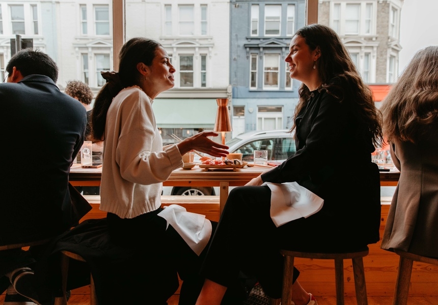 While several glasses and carafes of wine are on the pour at Eel, diners also have access to the entire Dorian list, curated by sommelier Jeri Kimber-Ndiaye (ex-Noble Rot), from across the road. Bottles and glasses are ferried across the street upon ordering.