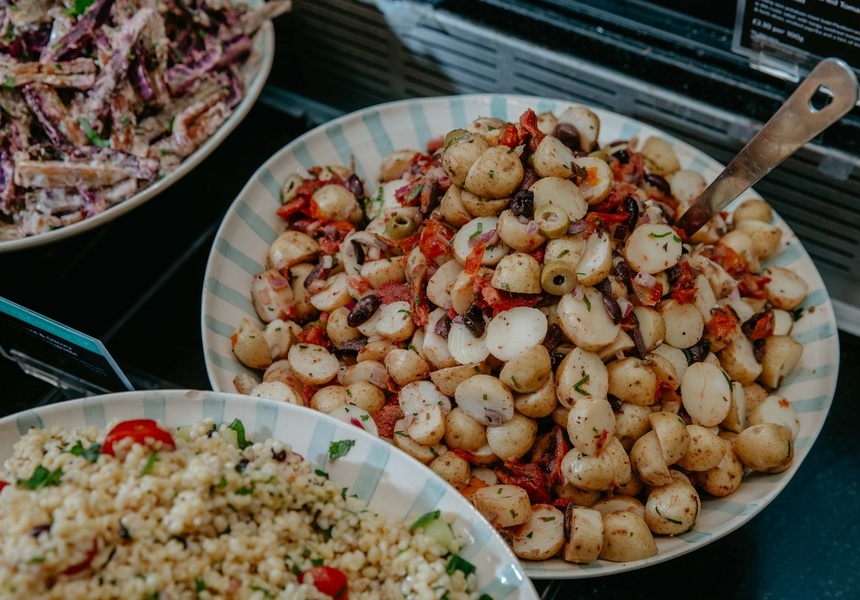 Down we go, into the heavenly subterranean food hall, past the wines and the cheeses and the best-in-show vegetables, all the way to the back. There are long queues for the filled-to-order bagels and fresh pasta; ignore them both. Between them you will find your Ithaca: the salad bar.