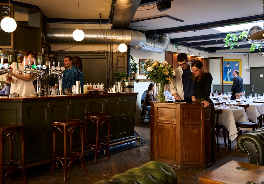 It’s a place where the duo hopes nobody will feel out of place. “There’s two sides to it,” Carr says. “You’ve got the pub, which is somewhere people can come and relax and not feel that they have to stand in any kind of ceremony. And then you’ve got the dining room, where there are white tablecloths but the energy is quite high and the music is quite loud like it was at Papi … It’s about having something for everybody.”