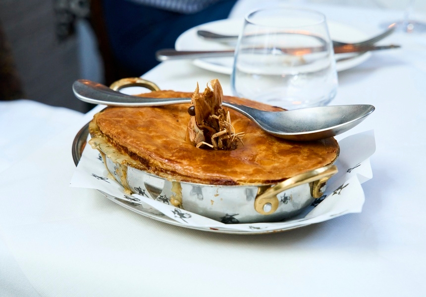 Right now, bar snacks include oysters, chips with wild garlic aioli, and cheese and pickle sandwiches. In the dining room a chicken and red prawn stargazy pie – with the crustacean’s head poking out the top, as tradition dictates – is already the star of the show.
