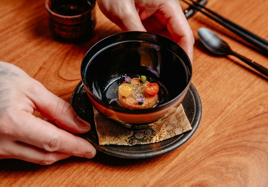 Sato has spent £1 million on the site’s refurbishment (think plenty of cherry joinery and marble). But he’s acutely aware of not becoming a restaurant that drops millions of pounds on a fit-out but doesn’t “have any soul”. He references Gordon Ramsay when he opened his eponymous, now-flagship restaurant.