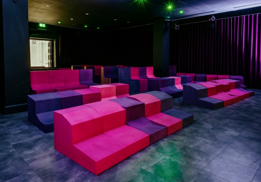 Upstairs, a library residency by The Otolith Group – the London collective known for its research-led films and installations exploring science fiction and postcolonial histories – further explores these ideas, opening its rich archive to the public. Visitors can browse books, play records or watch DVDs in a cosy viewing nook. “There are studios where people get their hands dirty; this is where you get your mind dirty,” says Nasar. Downstairs, the Minassa platform and theatre hosts music, film and live events by artists from across the Arab world. It's a room designed to shift functions between hosting concert, cinema and conversation.