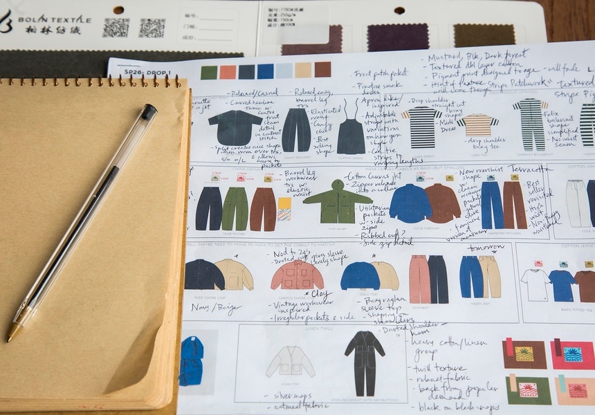 “These are pieces designed to be worn every day – a staple part of somebody’s wardrobe that they’ll pull out without thinking,” she says. “It speaks to the way I dress personally. I wear things until they’re dead and I have to repair them. I’d like to get to a point where clothes can just be fully composted.” In that same ethos, LF Markey clothes are seasonless, use non-toxic dyes and are free from synthetic fibres. They also have a weight and durability that feeds into the timeless aesthetic, using cotton drill and canvas fabrics, and feature workwear-style details like double stitching and cotton webbing.