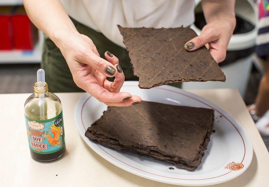 Most commercial soy sauces are made using the husks of soybeans (aka the leftover material from the bean after the oil has been extracted). “That’s like trying to make wine from grape skins,” Poon explains. “They press the husks, ferment them, add water, re-press them again and again, until they’ve squeezed out every last drop, like a teabag. The end product often includes added salt, caramel for colouring, and sugar.”