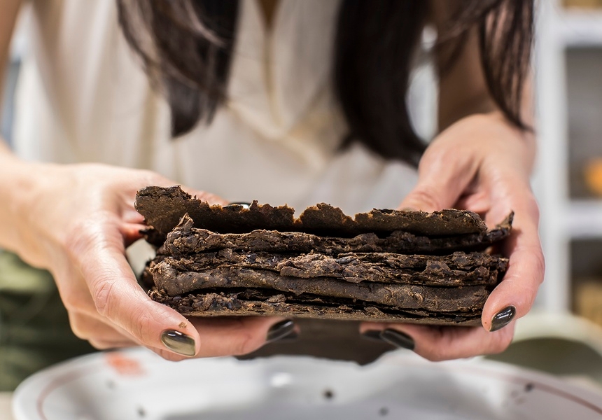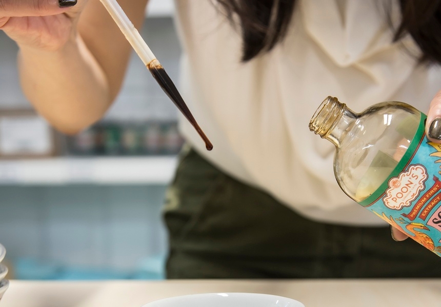 Poon’s soy sauce is made using the whole soy bean. It’s mastered by a small producer in southern Taiwan, a region known for its fertile soil, pure water, and optimal climate. “It’s pretty much the Kent of Taiwan,” she says. The beans are sown in September, harvested in December, and immediately frozen at a temperature where they’re still biologically active. That means they can still sprout whenever they need to. This step is crucial, as Poon only works on a pressed-to-order basis to ensure optimal freshness.