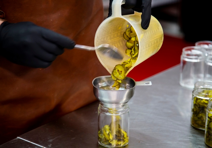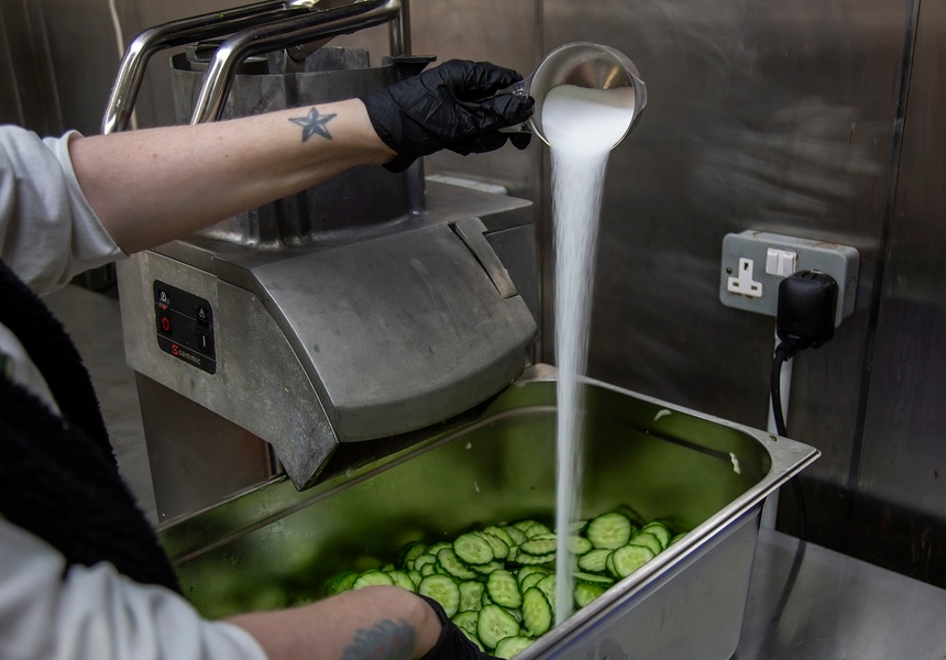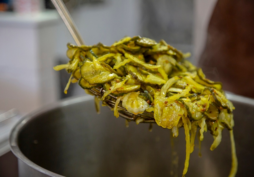 As you’d expect working with fresh produce, no cucumber is the same – especially not year-round. “The art is in the boiling step, as some take longer or less time in the brine. We have to make a judgment call on when they’re at a good point.” As a final flourish, the contents are hot-poured, allowing the flavours set together while naturally sealing the jars.