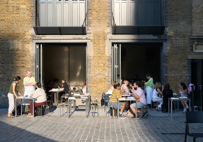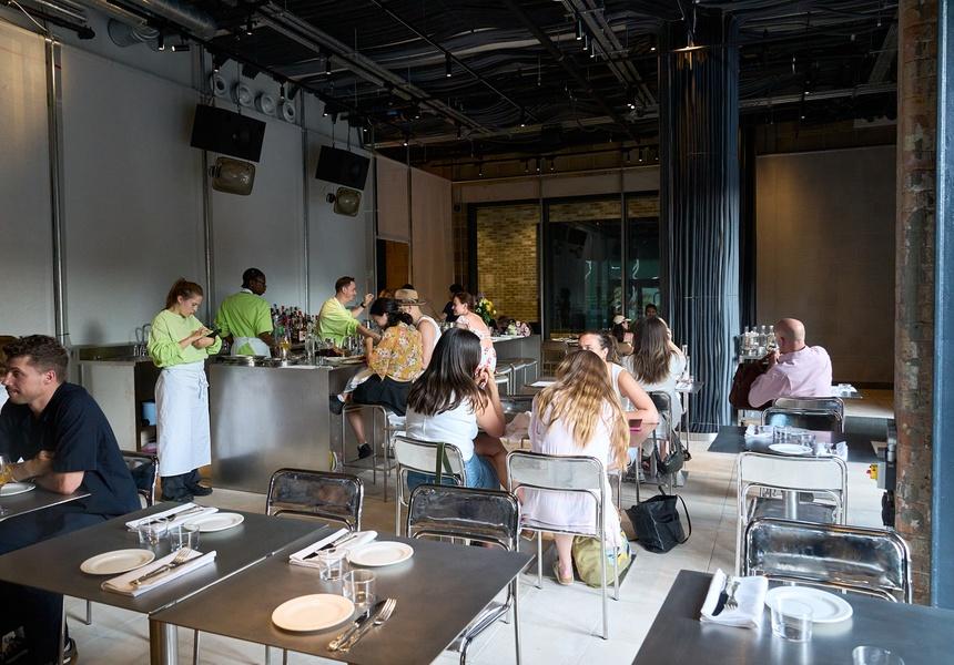 “I feel like I’m stepping into the Tardis [from Doctor Who] every time I come to work,” head chef Alfie Bahnan (ex-Trullo, Paradise and Legare) tells Broadsheet. The monochromatic design is the work of artist and Crosby Studios founder Harry Nuriev, who has collaborated with Dover Street Market, the Louvre, Gucci and more on installations, product lines and interiors. Kazhimova tells Broadsheet that the design is inspired by Shoreditch’s blend of urban grit and gentrified spaces. “It’s that mix of street art, luxury brands and street culture,” she says.