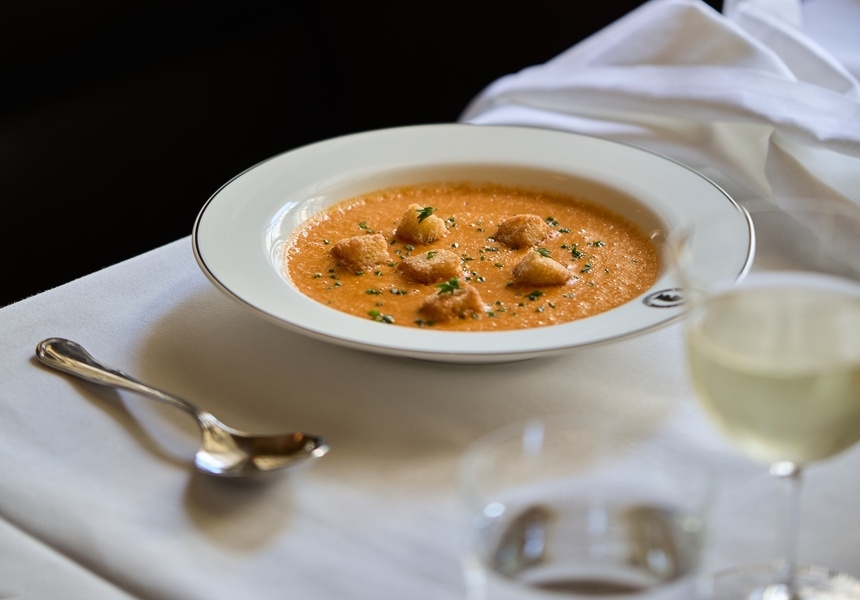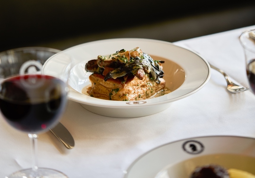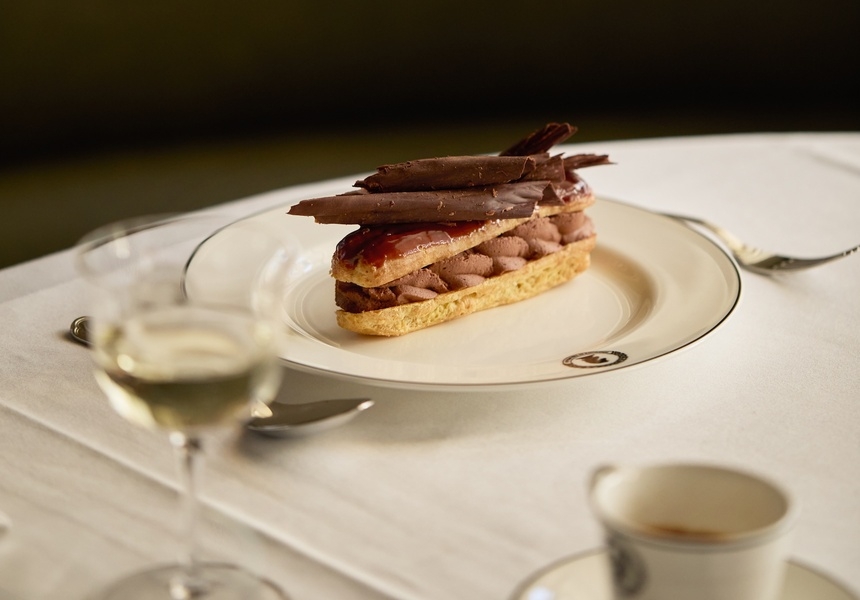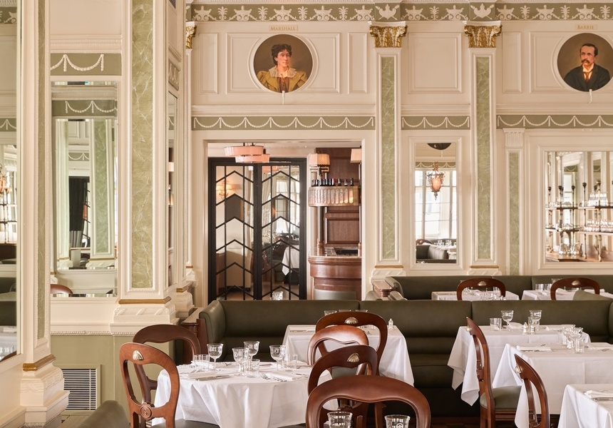 The menu is “very simple food, but very well-executed,” says executive chef David Stevens. “When you’re doing simple food like that, you’ve nowhere to hide.” Like The Grand Divan, Stevens took inspiration from archival menus. “There’s dishes on there like braised celery hearts with bone marrow, so we’ve created our own version of that.”