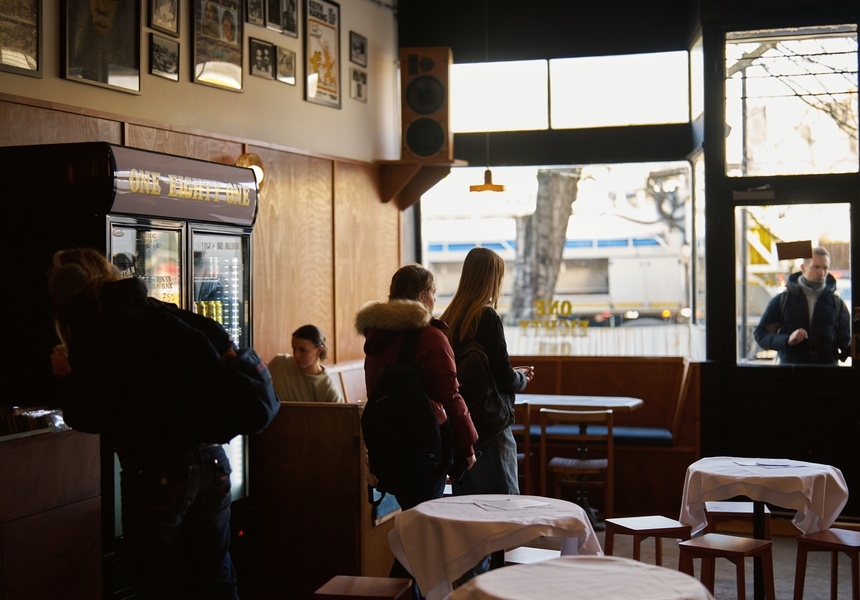 Come evening, the wooden record racks are covered to form another drinks counter and the stools can be cleared away for dancing. On Friday and Saturday nights, Gilmore books trusted DJs from his years on the London club scene. “Since we opened our doors in November, we’ve had some incredible nights where everyone’s dancing already and then a whole new crowd of people walk in and really crank up the energy,” he says. “Seeing this place buzzing with music and people makes all the hard work worthwhile.”
