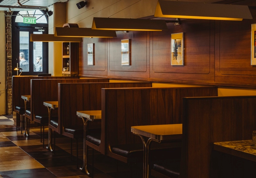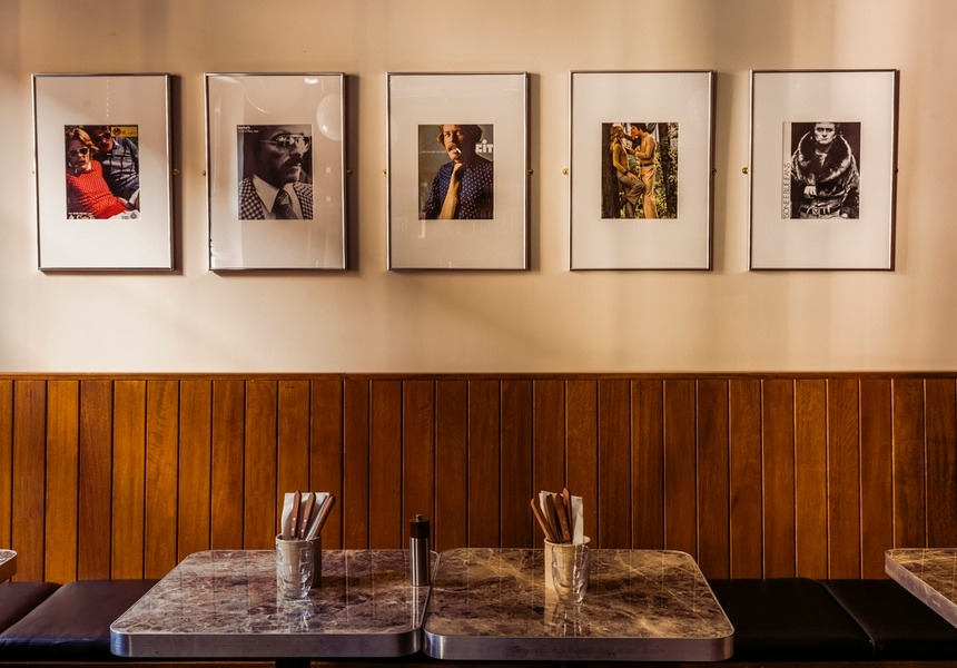 The 80-seater has a different personality from the London Bridge and Shoreditch spaces. Upstairs, soft natural light floods the long space, which is clad with tactile wood panelling and mustachioed vintage ad campaigns hung above leather-lined booths and marble table-tops. “They’re a nod to ’70s Soho, connecting a little bit back into the naughtiness of it,” says Siadatan.