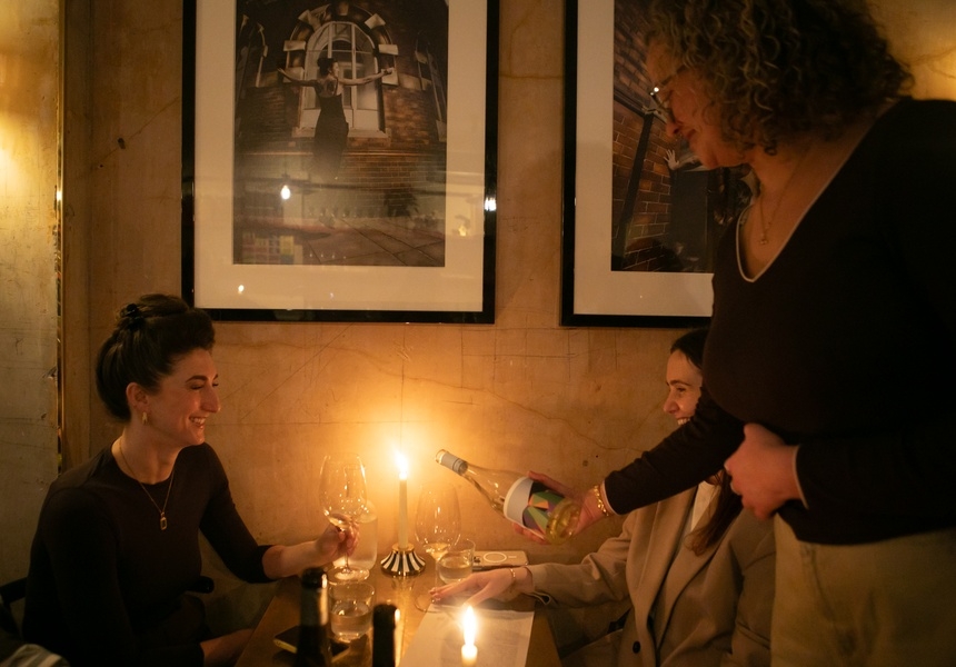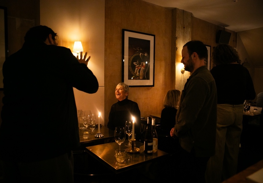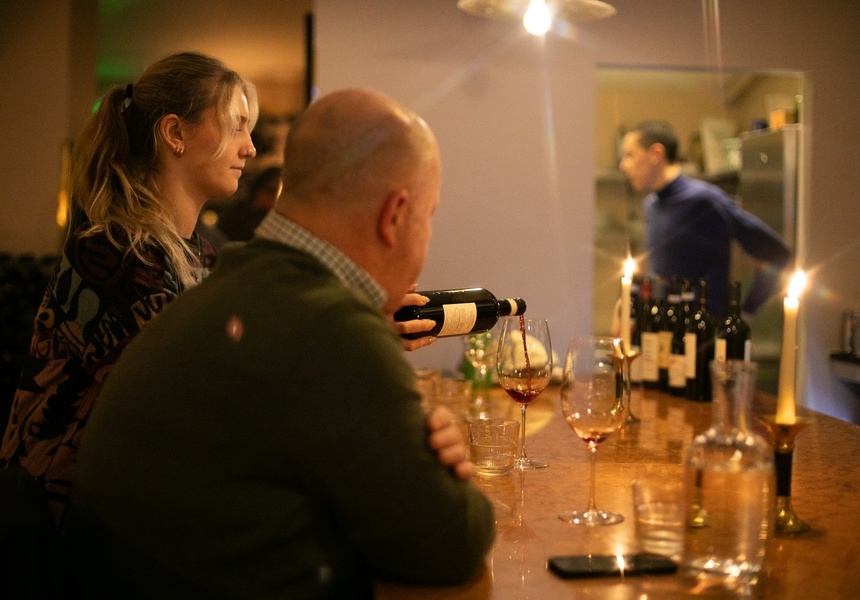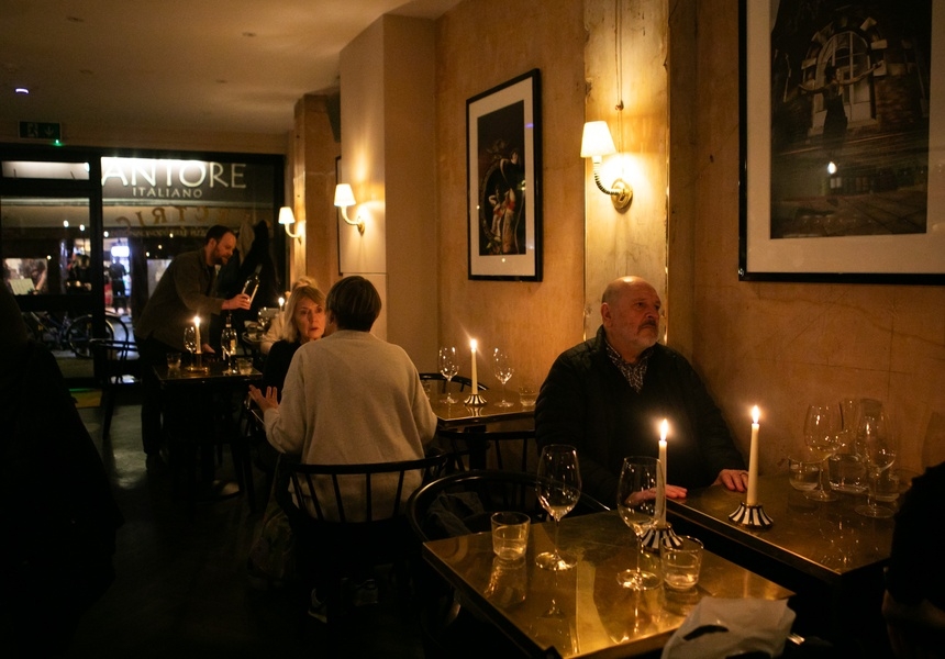 The former tattoo shop, now transformed into an elegant space with moody lighting, features a five-metre-long bar made of Veronese red marble. Dusi was determined to preserve the existing space’s legacy: patrons will notice tattoo-related artwork among the many wine bottles on display.