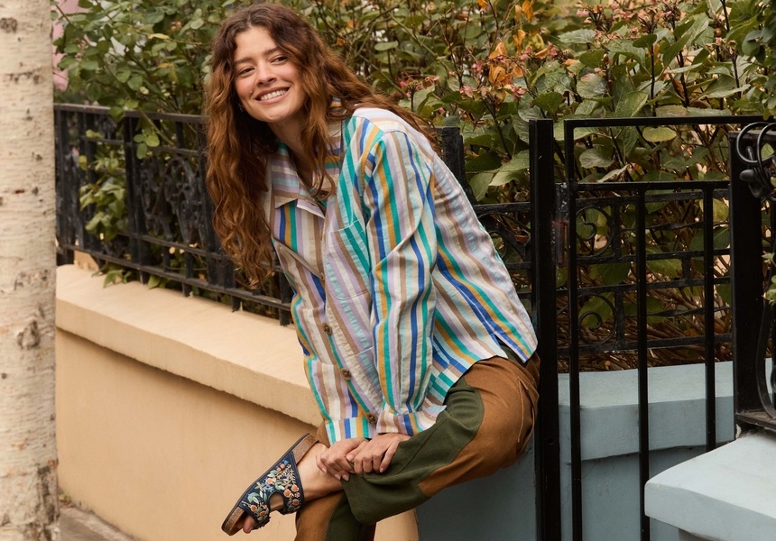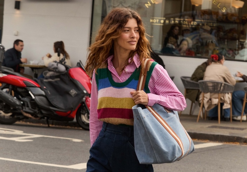 Though Penelope Chilvers will always be rooted in the rustic Spanish leather traditions that inspired its inception, it’s the brand’s original home in Notting Hill – a rust-toned shopfront with interiors that pay homage to the label’s Andalusian beginnings – that acts as a backdrop for its Postcards from London spring/summer 26 campaign. “Notting Hill has been home for most of my lifetime and it’s where our first shop is, on Ledbury Road,” Chilvers tells Broadsheet, sharing how she drew on the neighbourhood’s colourful houses and bohemian spirit when designing pieces like the best-selling Portobello blouse with its romantic frills or the Elgin striped tank knitted in a range of vibrant hues.