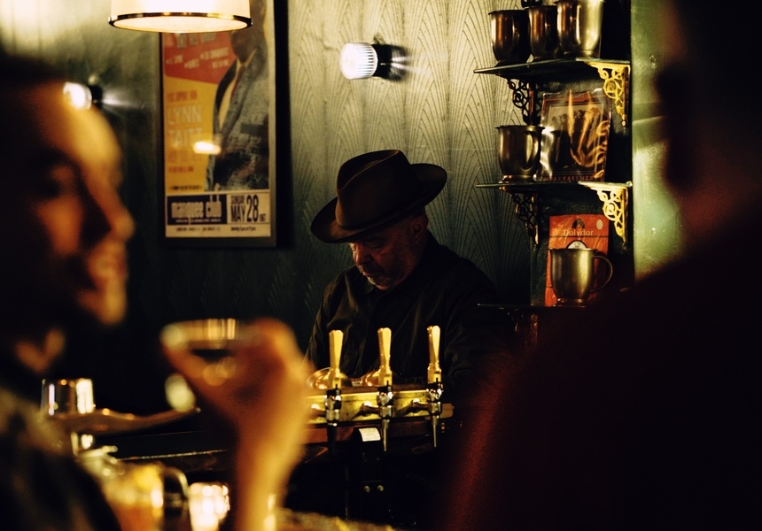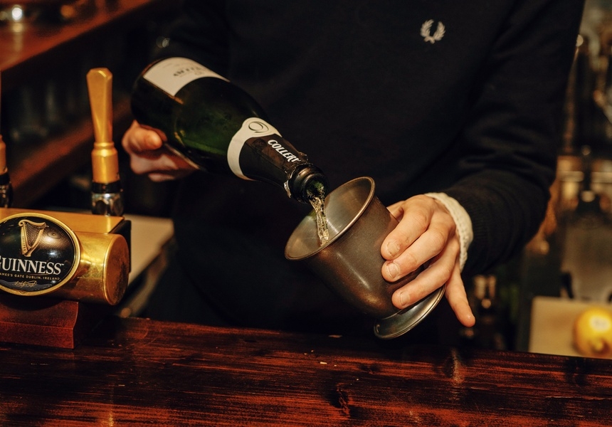 The cocktail menu is the star of the show. It opens with three signatures: the House Martini, the Black Velvet and Buster’s Stout Punch. The House Martini is served ice-cold with vodka or gin. The crowd-favourite Black Velvet combines Guinness and champagne in a pewter tankard. And the venue’s namesake Buster’s Punch mixes three rums with cognac, lemon sherbet and Guinness. It’s topped with nutmeg and served directly from a large “Dickens-esque” punch bowl at the bar. “It’s soft and delicate,” says Wall, “the opposite of booze thrown in a bucket.”