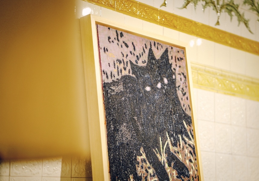 The original H&R Johnson tiling acts as a backdrop for artworks by Aleksander Mechlinski, Daisy Douglas Miller, Ishbel Lowther, Jiahe Zhang, Joline Kwakkenbos and Leo Arnold – the first group of contemporary artists in what will be a rotating series. “We curate artists whose work invites curiosity and conversation,” Pyo tells Broadsheet. “Rather than acting as static decoration, the artworks transform the space and evolve over time, creating moments of reflection and discovery. It’s important to me that the environment feels alive.”