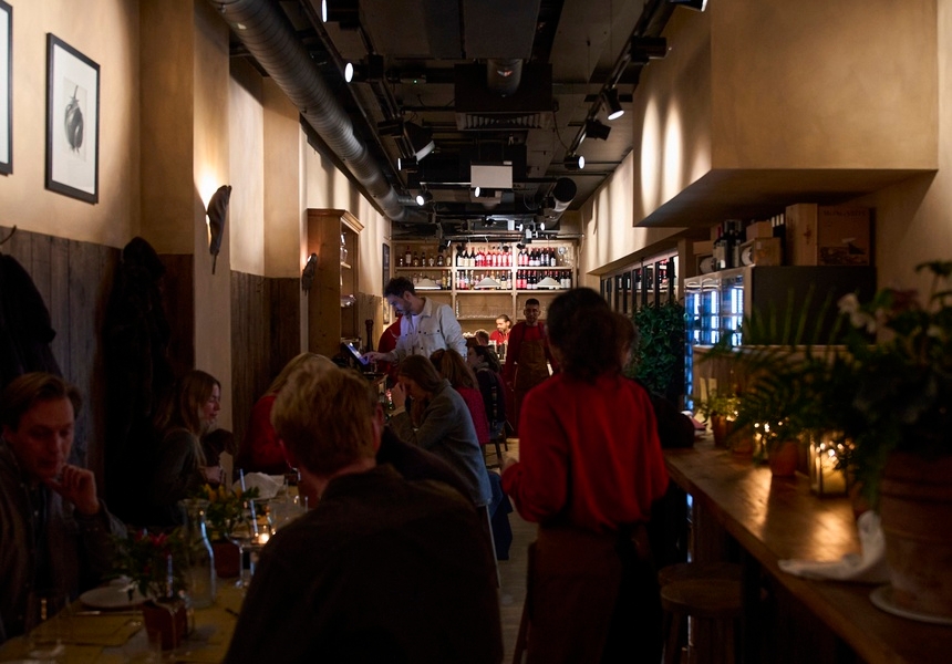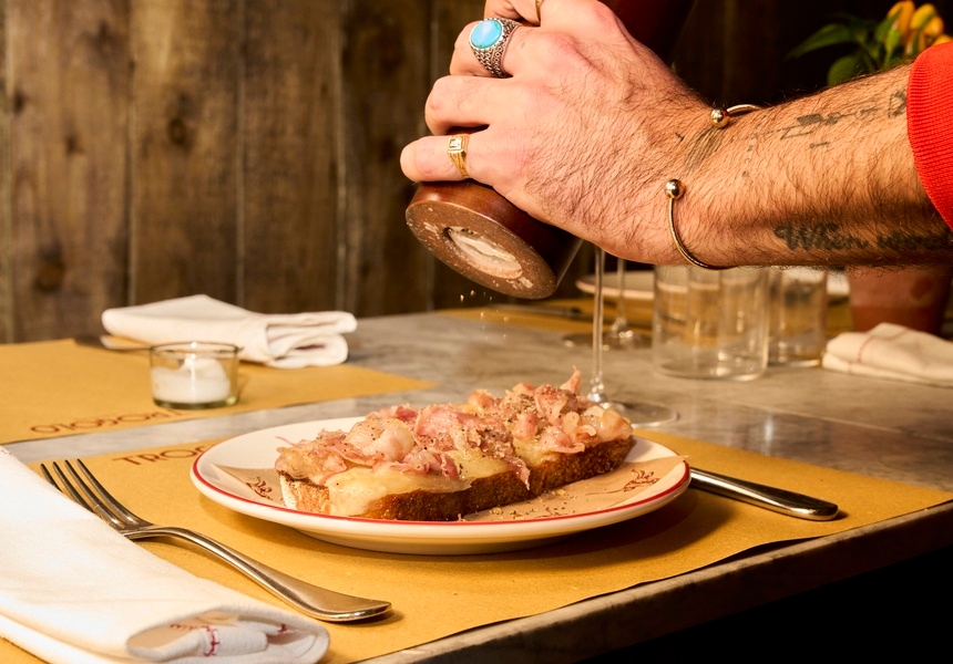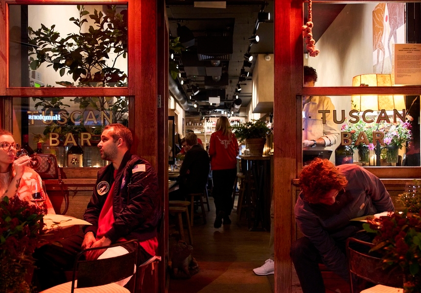 The food is rooted in Tuscan cooking and deliberately unfussy. The menu is split into sections: “dal bancone” (“from the bar”) and “dalla cucina” (“from the kitchen”). From the bar come crostoni topped with pecorino and pears, hand-cut cured Cinta Senese ham and crisp fritti of sage leaves and anchovies. Out of the kitchen, handmade tagliolini tossed with porcini or white truffle, and a slow-cooked ragù “done in a very old way, with a little bit of chocolate through it just as they do with wild boar back home”, explains Boglione, who lives in Tuscany. There’s also pollo al burro (chicken roasted in butter), arista con l’osso (bone-in pork loin with chilli) and soups finished with new-season olive oil.
