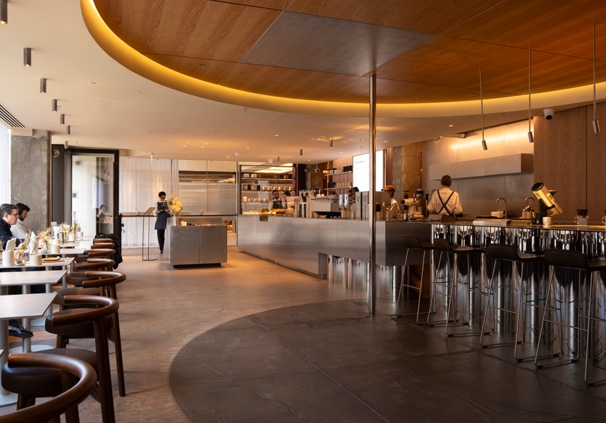 Thanks to Horne’s unusual background in luxury aquarium architecture, Watchhouse coffee shops are synonymous with beautiful design – and the new Millennium Bridge house is no exception. The space, designed by Cake Architecture (A Bar With Shapes for a Name, Arc Canary Wharf), is rooted in emotion and the local area. Known for its romantic approach, Cake has tapped into the feeling of the area: the river’s ebb and flow, the changing light and city energy, taking inspiration from Monet’s Waterloo Bridge, Effet de Brume. Its striking dropped ceiling pays homage to the baroque beauty of the St Paul’s dome, while warm timber and sleek aluminium panels bring visual contrast, nodding to the industrial design of nearby Tate Modern.