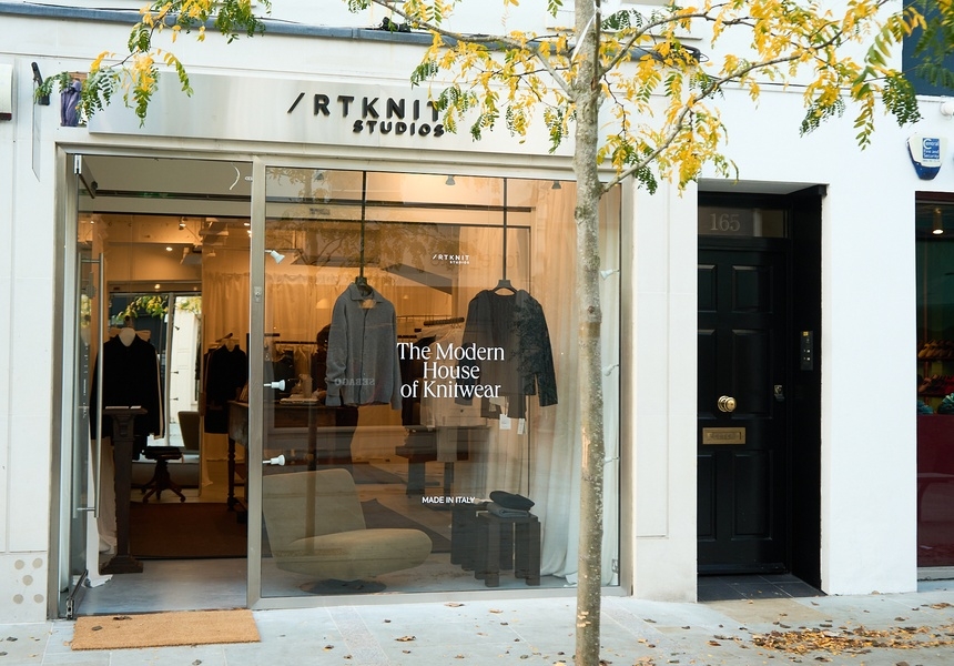 With its first British store, Italian knitwear brand Artknit brings luxury Italian craftsmanship to SW3. A glass panel with The Modern House of Knitwear printed across it gives a glimpse of the interiors from the outside. Inside, draped fabrics, hard wood and metal accents are the backdrop to Artknit’s womenswear and menswear styles, which are set amongst handcrafted furniture and tiles from the brand’s birthplace, Biella in northern Italy. The store opened in Chelsea in late October, and will reside there for the next few months.