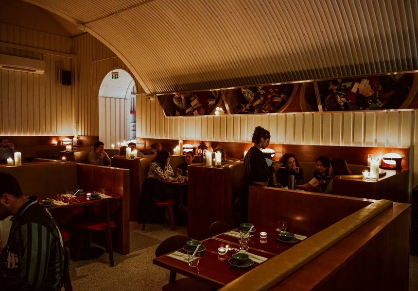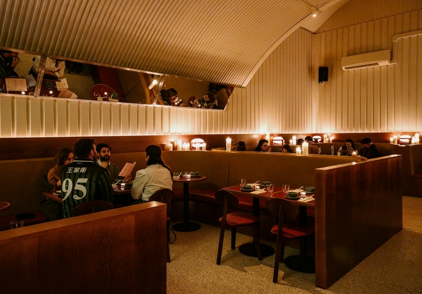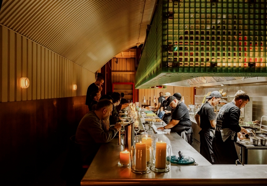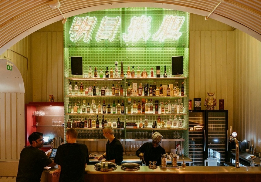 Local designer Daytrip Studio’s (The Lavery, Nightjar, Swift) interiors also nod to the team’s journey through Hong Kong. Diners can sink into intimate booths or perch at one of 10 counter seats looking directly over the open kitchen. It’s all centered around a striking jade-coloured back bar, softly illuminated by a neon glow.
