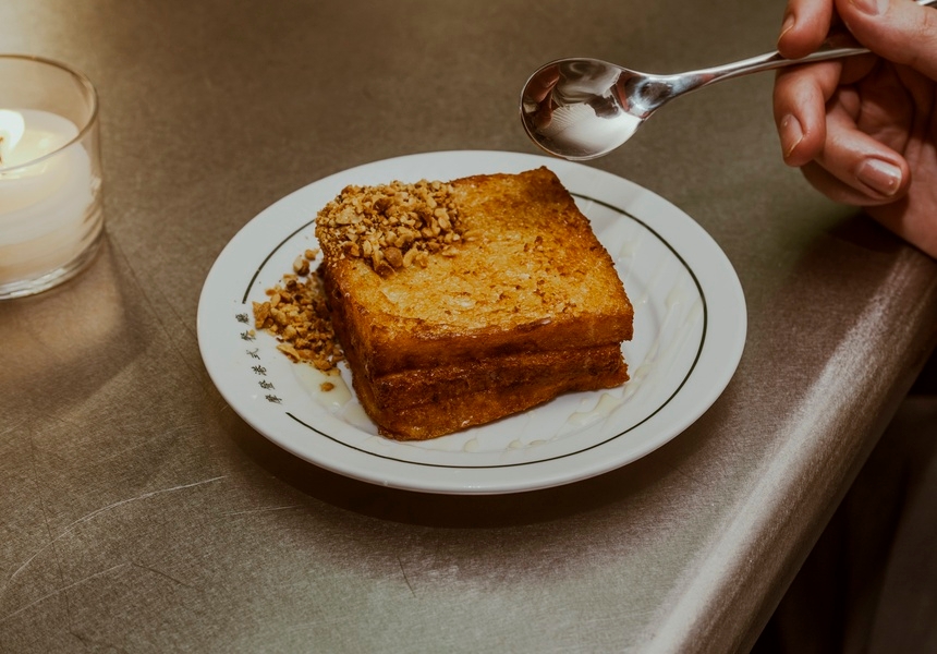 Meals come family-style, with lazy susans built into some of the tables. Heading up the kitchen is Ferdinand “Budgie” Montoya (Sarap). Start with street-food staples: scallops with glass noodles and XO sauce, curry fish ball skewers and beef tendons served two ways. There’s also prawn toast on a custom loaf from neighbouring E5 Bakehouse, a smoky rotisserie half chicken cooked over charcoal, and typhoon shelter tofu with salted egg yolk – a veggie take on the Hong Kong classic typhoon shelter crab, which is traditionally stir-fried in a punchy chilli and garlic sauce. Hong Kong-style French toast filled with peanut butter crème, drizzled with condensed milk, and topped with roasted peanuts is a dessert highlight.
