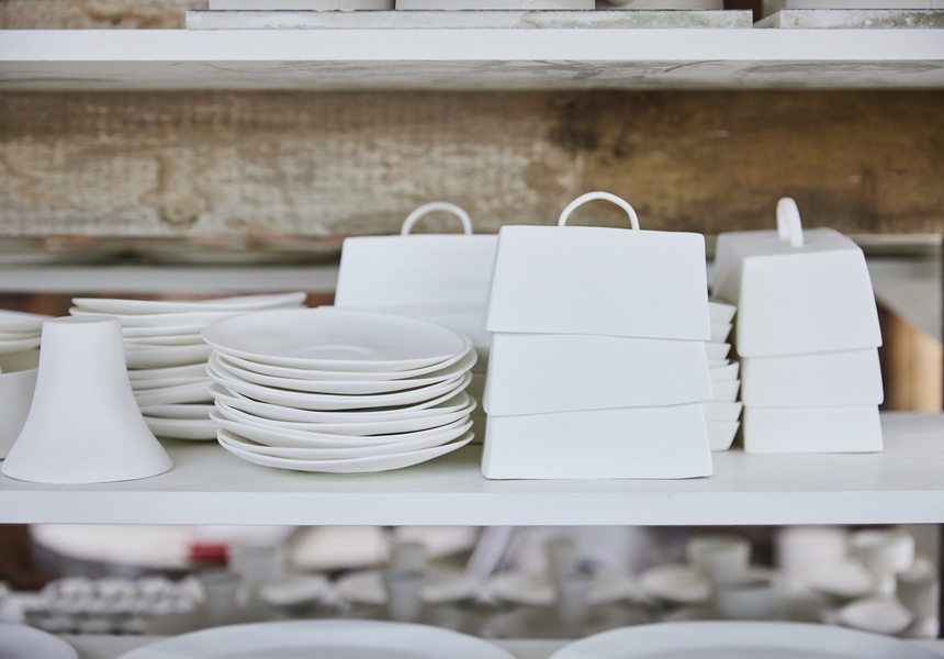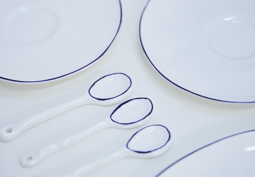 The duo makes their slip cast, hand-painted crockery in Feldspar’s Dartmoor studio and at a family pottery in Devon; the brand is listed by Heritage Crafts as one of just a handful of makers producing fine bone china in the UK.