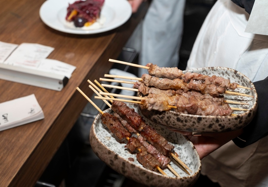 Situated in what was once Papi, Walters and co-owner (and head chef) Mike Bagnall’s new “unconventional Italian” restaurant revolves around a lesser-known facet of the country’s cuisine: arrosticini. The skinny, flame-grilled skewers – usually made with mutton or lamb – are an affordable staple of central Italy’s Abruzzo region, often stripped standing up with a glass of wine in hand.