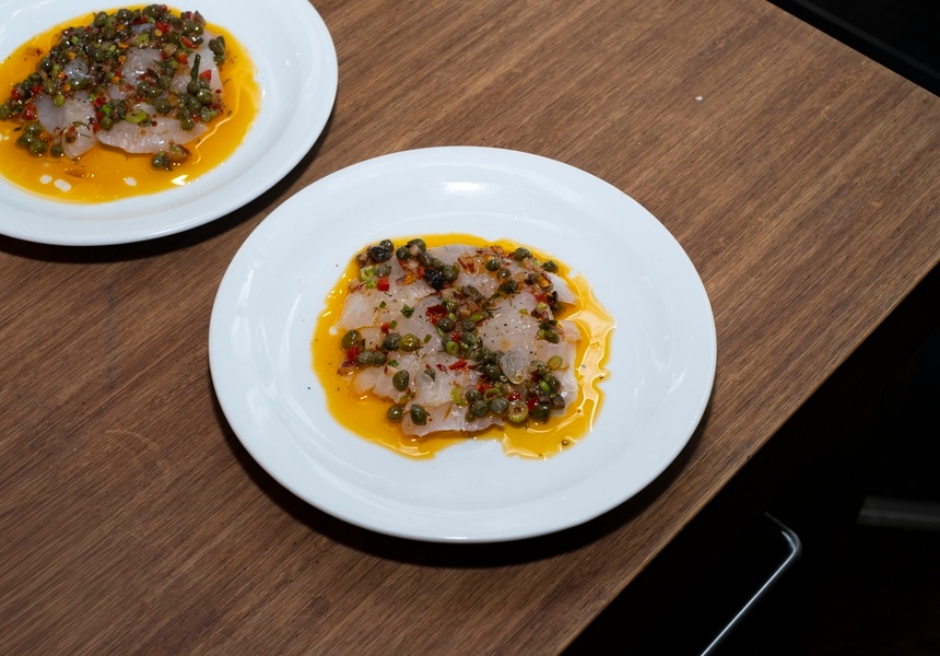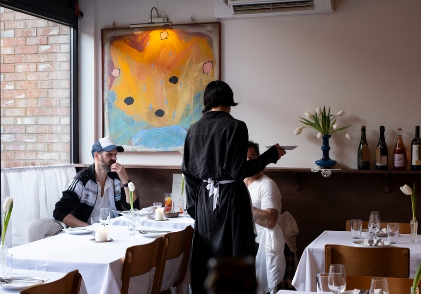 Named for the sad, smoking clown in Edward Hopper’s 1914 painting, Soir Bleu, the restaurant is “all about contrast and emotion,” co-founder and general manager, Dylan Walters (ex-Bambi), tells Broadsheet. “It’s about having fun. You’re eating meat off sticks, getting a bit messy, and then there’s a white tablecloth underneath it. It plays into the whole concept. It’s theatre.”