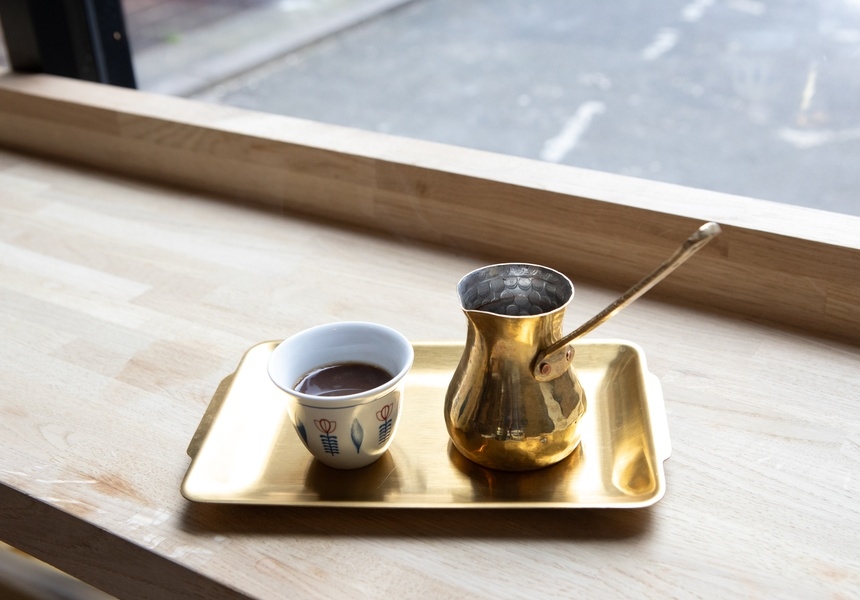 Alongside fresh juices and homemade ayran – a salted yoghurt drink popular across the Middle East – Cherkawi also serves Lebanese coffee, prepared in the traditional style often labelled as Turkish coffee. He plans to expand into espresso-based drinks soon.