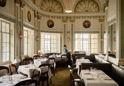 There are also smaller bites, including triangular pastries filled with spinach named fatayer, alongside a selection of dips including black chickpea hummus and muhammara, a red pepper and walnut paste.