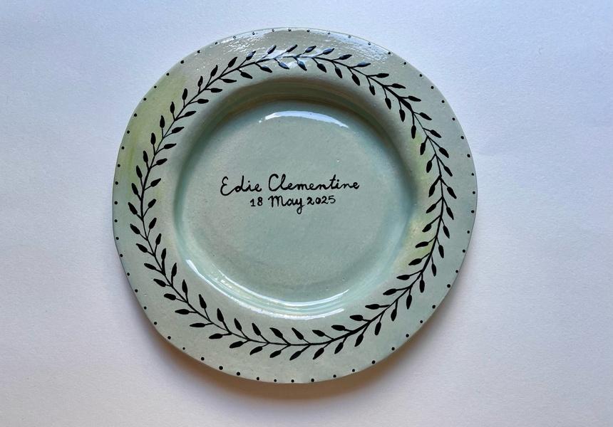 I finally have a salon hang in my hallway. It’s a personal mix of photographs, travel souvenirs and artworks. I particularly love the three beautiful birth plates [ceramic keepsakes commemorating a birth] handmade by The English Boys.