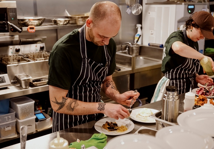Following in the spirit of the original Peckham rooftop and National Theatre flagship, the always-changing 12-dish menu is designed to either pick through or order in full for a generous feast. New dishes include a warm, parmesan-laden brioche, and pane carasau (Sardinian flatbread) with gorgonzola, pork-and-fennel salami and pickled celery. These lead into comforting larger plates: cod with winter tomatoes, vinegar and hazelnuts; pork tenderloin with cabbage and mustard; and ox cheek with Genovese ragu. Some favourites – such as the cauliflower fritti with aioli and the Custardo®, a silky, drinkable crème anglaise spiked with espresso from Catalyst Coffee (which the team has proudly trademarked) – will remain on the menu, along with a concise new dessert selection of pistachio olive oil cake and vanilla saffron soft serve with marsala sponge.