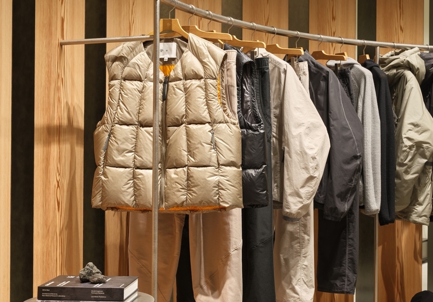 Japanese clothing label Goldwin has just opened its first European flagship store in London. The brand’s status as an IYKYK secret for fans of minimalist outdoors design is about to change; the shop on Soho’s Broadwick Street is a paean to Goldwin’s ethos of innovation and heritage.