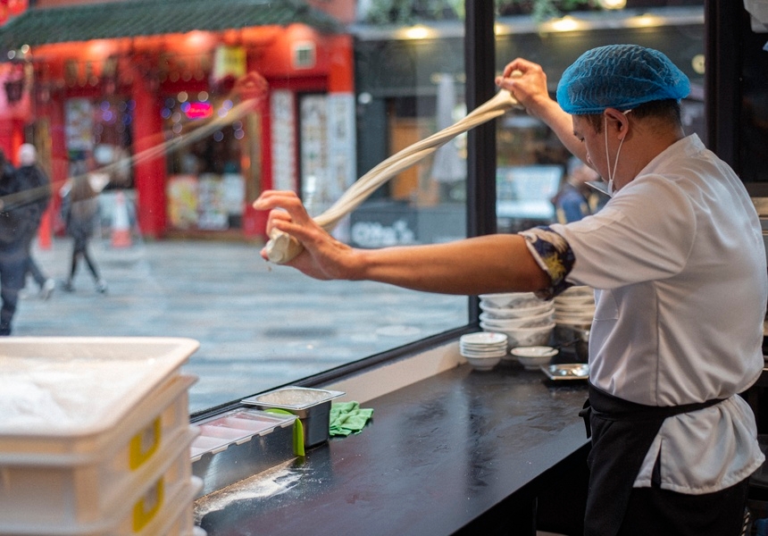 Anyone passing by Gerrard Street in Chinatown – currently vibrant with hanging red lanterns for Lunar New Year – may have noticed a new addition. By day, they might spot a chef pulling dough in the window to make Lanzhou-style wheat noodles; by night, huffs of steam from boiling broths and pan-fried pork buns. The activity signals the arrival of San Hao, a noodle atelier by chef-patron Daren Liew.