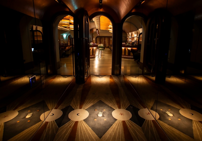 The design narrative is thoughtfully layered and rich, with a backstory filled with local characters. Photos by Man Ray and Cecil Beaton showed the jazz age poet and activist Nancy Cunard wearing her statement bangles. Lind says those bangles, along with Cunard’s patterned hat, are directly translated into the designs of the lamps, textiles and patterned floors. Linocuts and photos on the bedroom walls include famous Fitzrovians such as James Joyce next to shots of today’s residents. Aleister Crowley, the hedonistic occultist and rogue around town, is given nods – including a snake symbol on the floor of the subterranean Gambit Bar.