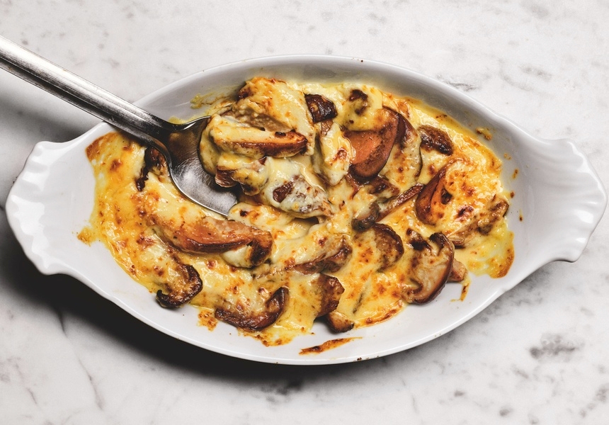 It also features more than 60 mushroom-y recipes, including mushroom larb, Hungarian mushroom pie and mushroom fried rice, as well as this porcini gratin.