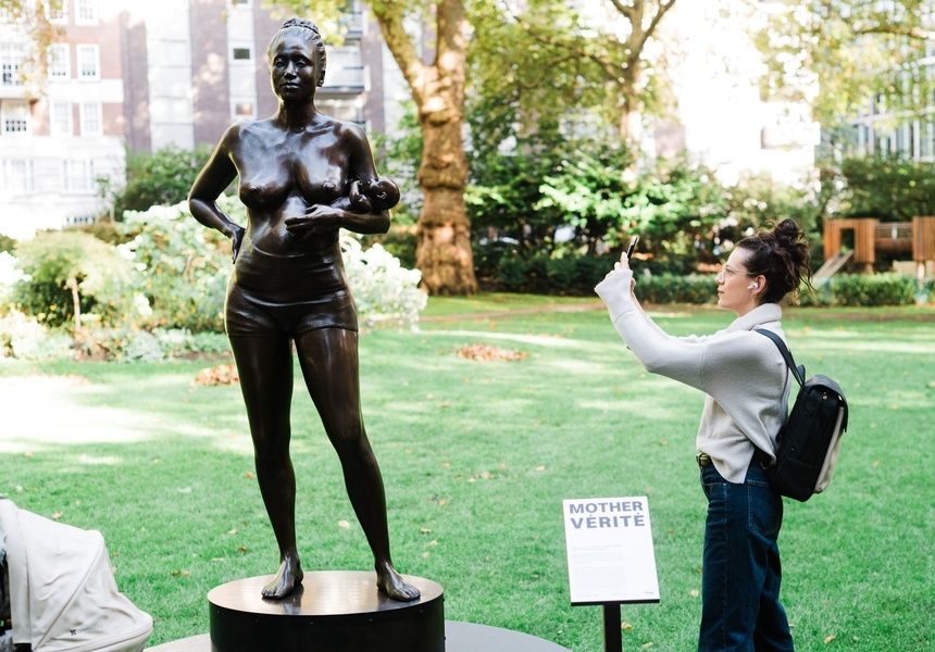 Mother Vérité by Rayvenn D’Clark was commissioned by Chelsea Hirschhorn, founder of baby and parenting brand Frida. It was unveiled on October 9 at Portman Square Garden W1H, where it will be on display until October 21, before touring.
