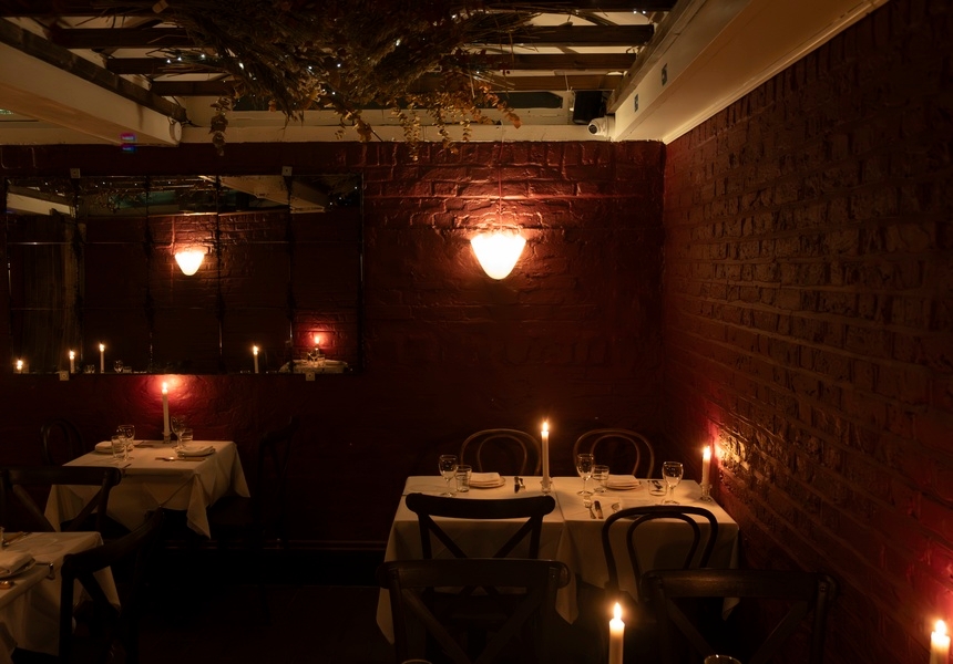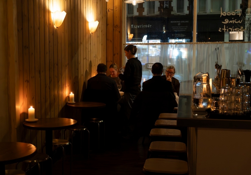 Ruth’s is a petite 40-seat “British bistro” split in two. Out back is a cosseting, candle-lit burgundy cave seating those who’ve pre-booked, while the wood-panelled and bare-plaster-clad front has a cluster of tables and stools at a stainless-steel bar for the spontaneous.